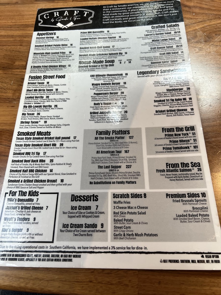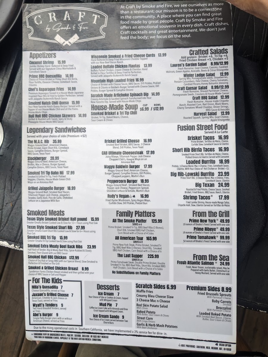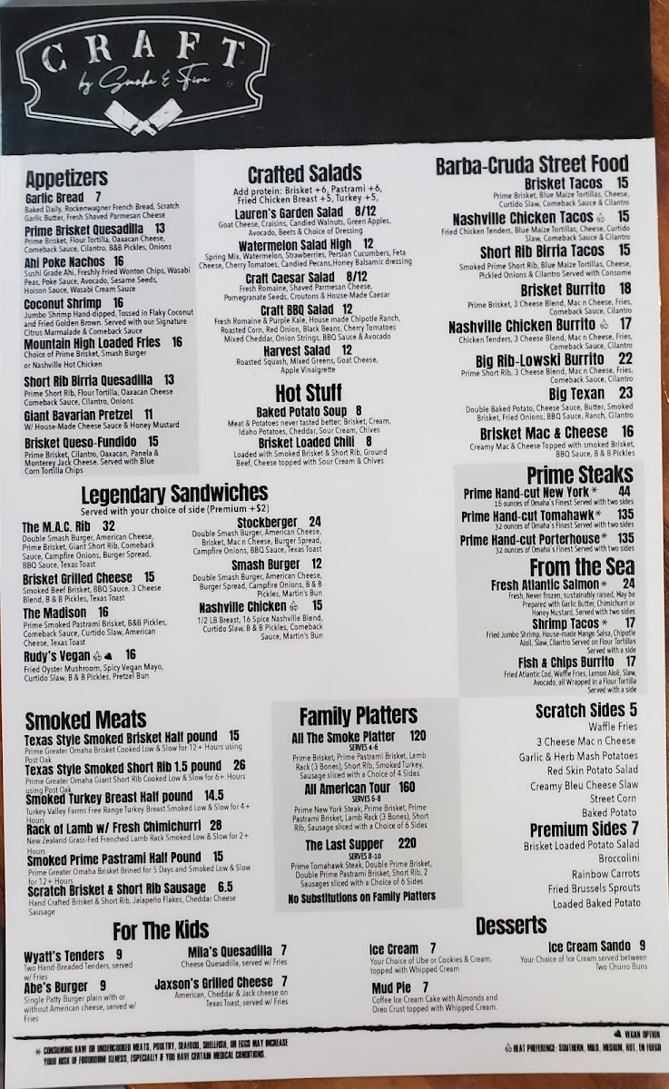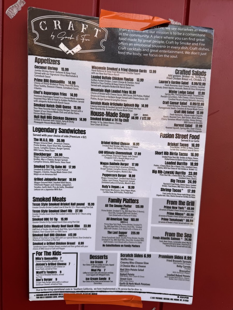 If you're looking to satisfy your cravings for delicious, smoky flavors, look no further than the Craft By Smoke And Fire Menu. Located at 30 W Green St, Pasadena, CA, this spot is all about bringing the heat with expertly smoked meats and flavorful dishes. From juicy pulled pork to tender brisket, the menu offers a variety of hearty options perfect for any barbecue lover. You’ll also find sides that complement the bold flavors, from crispy fries to creamy mac and cheese, all crafted to pair perfectly with the smoky goodness. Whether you're grabbing a quick bite or settling in for a meal with friends, the menu promises a satisfying experience with every bite. Come hungry and enjoy the flavorful journey that Craft By Smoke And Fire has to offer!